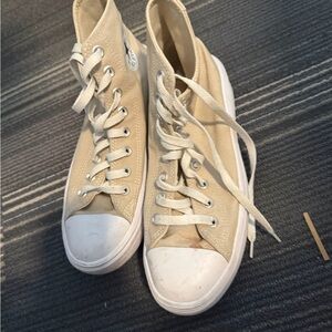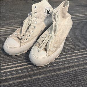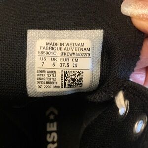 Classic high-top design. Black canvas with white laces. Signature Converse logo on the side.