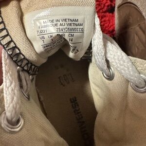 Experience timeless style with these Converse high-top sneakers, featuring a sleek black and white color scheme. Crafted with durable canvas and a sturdy rubber sole, these sneakers offer both comfort and longevity. The iconic white toe cap and laces add a classic touch, making them a versatile choice for any casual occasion.