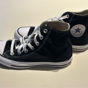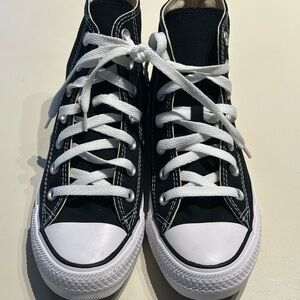 Classic Converse high-tops size 5 men and 7 women’s. Black canvas with white accents. Comfortable and stylish. New never been worn.