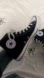 Stylish black high-tops with white accents. Features classic Converse logo.