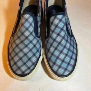 Converse Blue Plaid Low Top Slip On Sneakers Casual Shoes Women’s Sz 5.5