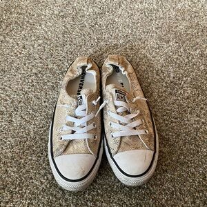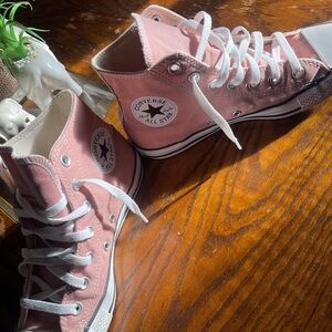 Blush Converse slip-ons. Features lace-up style. Comfortable and casual.