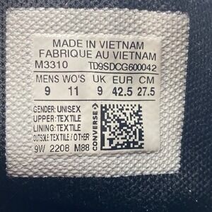 Converse CHUCK TAYLOR All Star Black Hi TOP sneakers M3310 Mens 9 Blackout