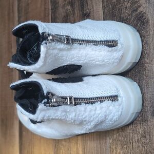 The CLOT x Converse Chuck 70 Hi comes in a mixed-material construction of hair-on-hide leather and faux fur in pure white tones, with furry All-Star patch and terry cloth tongue in contrasting black to recall iconic panda hues and its cozy, cuddly texture. The semi-transparent white sole, meanwhile, features a panda paw print on the outsole for an irresistible touch, whereas the micro-suede interior and back zip closure contribute to maximized wearability and comfort.
