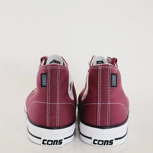 Converse CONS CTAS Pro Mid / Hi High Top Cherry Vision Wine Burgundy Maroon Red / White / White Canvas Unisex Skate Sneakers A04150C NWT
