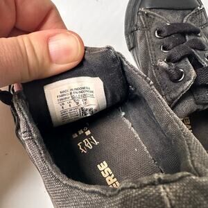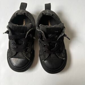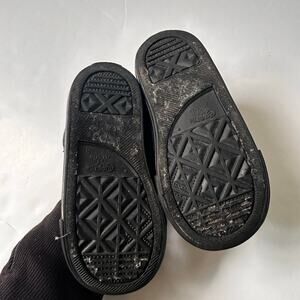 Awesome Converse high-top sneakers for your little one! These stylish, all-black lace-up shoes are perfect for everyday wear. They are in great condition and ready for a new home. Don't miss out on these classic kicks! Grab them now and let your toddler step out in style!