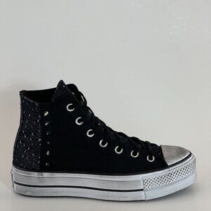 Converse Chuck Taylor All Star Lift Hi High Top Studded Punk Black / Silver / Black Canvas Women's Platform Sneakers / Boots A06450C NWT