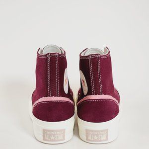 Converse Chuck Taylor All Star Hi High Top Lift Seasonal Color Deep Bordeaux Wine Burgundy Pink Red / Egret Women's Platform Sneakers / Boots A07114C NWT