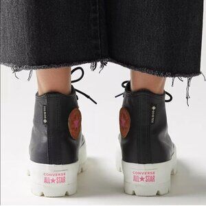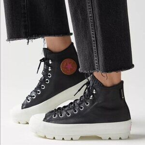 Step up your sneaker game with these rare Converse CTAS high-top sneakers. Crafted with Gortex lug sole for durability and comfort, these size 7.5 leather sneakers feature a unique moss olive hue. Perfect for collectors and fashion enthusiasts seeking both style and functionality. Waterproof. Retail $120