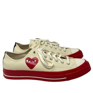 Converse Chuck 70 CDG Low Top Shoe Skate Women Sneakers Canvas Beige Red A01796C
