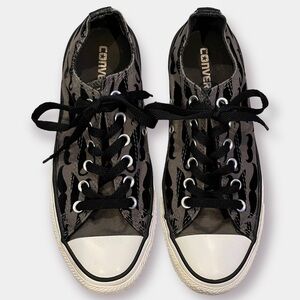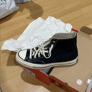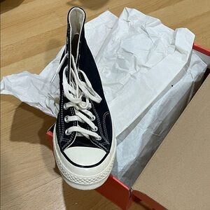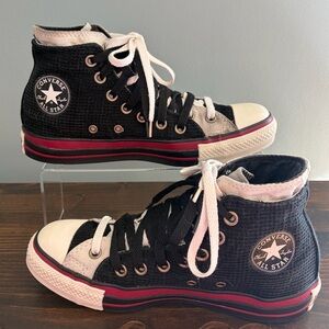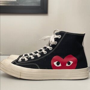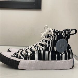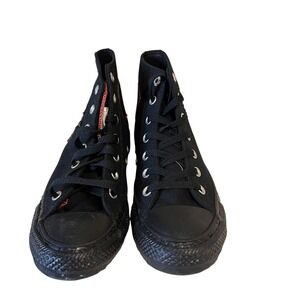 Sleek black high-tops with white laces. Features classic Converse logo.