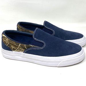 - Hickory stripe pattern and 100% recycled polyester heel-loop are workwear-inspired
