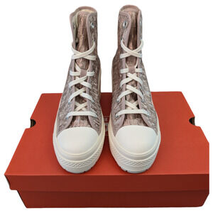 A rare Converse exclusive that transforms the Chuck 70 into a statement piece. Crafted with luxe wrinkled satin in the dreamy “Chaotic Neutral” palette, this pair takes the timeless high-top silhouette to new heights—literally—with its bold lugged heel and platform sole. Equal parts streetwear, runway, and collectible.
