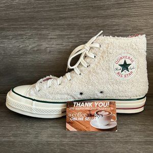 Converse Chuck 70 HI Winter Holidays Sherpa Egret Red Green Sz 10.5 Women's NWOB. Condition is New Without Box. Shoes are new, but may not be in absolute perfect condition. May have minor cosmetic marks/blemishes, slight discoloration, shelf wear, etc.