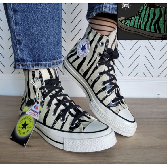 ⭐Converse Chuck 70 Hi 9 Women Shoes Zebra Print Canvas Glow in the Dark A15032C