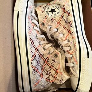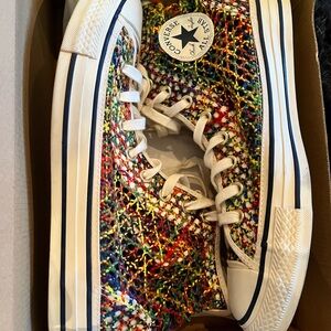 Converse Chuck 70 Hi Pony Hair Camo sneakers with a bold camo design. Features soft pony hair in brown and tan hues with classic white accents. Preowned excellent like new condition. Unisex men’s 8, women’s 10.