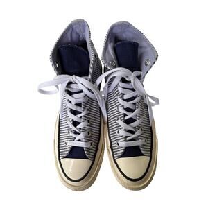 Converse Chuck 70 Hi Sneakers A004722C Washed Indigo Hickory Stripe Womens 8.5