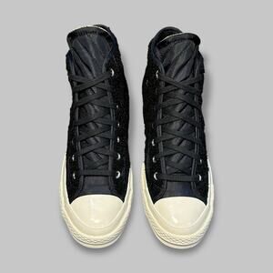 Note: These Converse Chuck 70s feature a rare sherpa fleece upper in a sleek black and egret colorway, combining cozy vibes with street-ready style. Perfect for collectors or casual wear. Please review all photos for full condition and color accuracy, as lighting may vary.