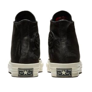 Black Embossed Elevate your look with these textured black Converse high-tops. Stylish and versatile for any occasion.