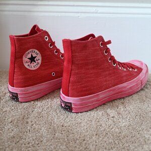 Brand new pair of Converse Chuck 70 Overdyed Linen sneakers in “Gym Red/Black/Gym Red” colorway. Inside size tag states men's size 8.0, women’s size 10.0.