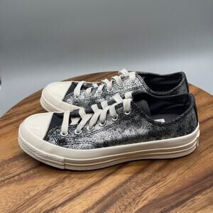 Converse Chuck 70 Ox Shoes Womens 8.5 Sparkly Silver Leather Comfort Casual