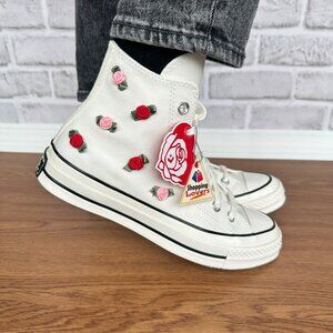 🌹🌹🌹Converse Chuck 70 Valentine's Day Hi Sz 8 Womens Shoes Roses Beige A10637C
