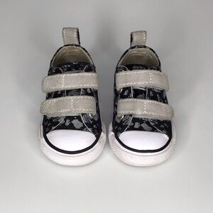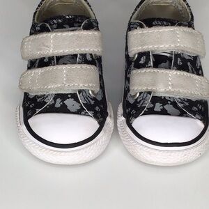 Converse Chuck Taylor All Star 2V Black and Gray Leopard Print Sneakers.