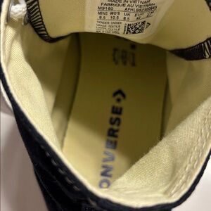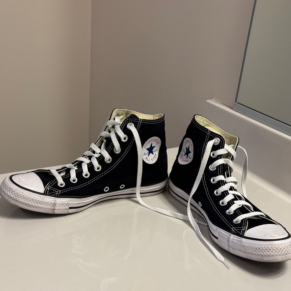Sleek black high-tops with white laces. Features iconic Converse logo.