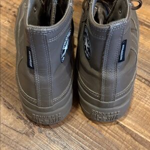 Waterproof Stylish leather sneakers by Converse. High-top design with durable construction. Some scuffs but very good condition. A gift yhat just didn’t fit.