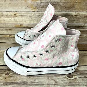Converse Chuck Taylor All Star Girls Pink White Floral Lift High Top Sneakers 2