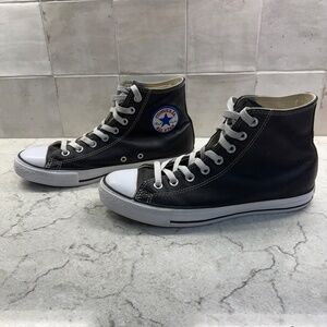 Converse Chuck Taylor All Star Hi Black Leather High Top Sneaker Shoe M 8 W 10
