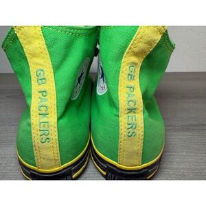 Keywords: Converse Chuck Taylor, High Top Sneakers, Green Yellow Shoes, GB Packers, Team Spirit, Casual Wear, Sporty Style, Iconic Sneakers, Lace Up, Unisex Style, Limited Edition, Athletic Footwear