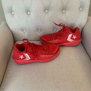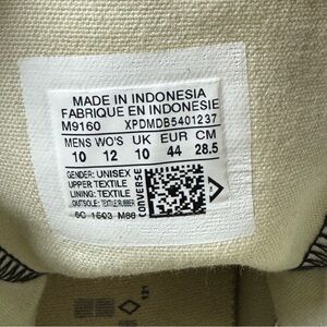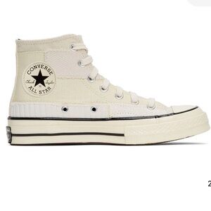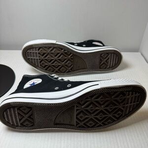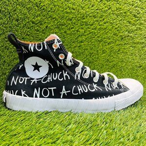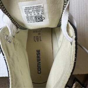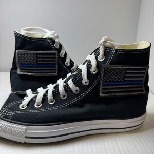Converse Chuck Taylor All Star High Top Sneakers M10 W12 in excellent condition. Both have hand attached removable Velcro patch, as shown in pictures.