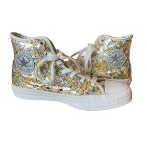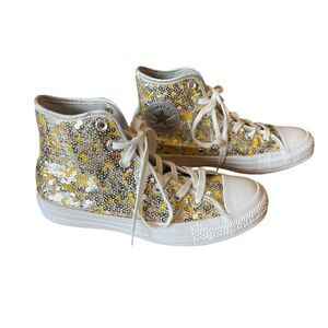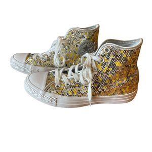 Converse Chuck Taylor All Star High Top Sneakers Sequins Yellow Gold Womens 7