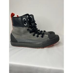 Converse Chuck Taylor All-Star High Top shoes in Thunder/Signal Red/Black color, size 2 for kids. These shoes feature a colorful design suitable for boys, with a unisex style, making them versatile for both genders. The model is the Converse Chuck Taylor All-Star, known for its high-top shaft style and iconic brand. It is ideal for unisex kids looking for a stylish, comfortable shoe option.