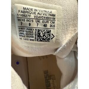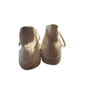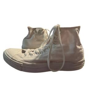 Converse Chuck Taylor All Star High Tops, Optical White, Men's 7/Women's 9. Canvas uppers with rubber toe cap and gum outsole. Gently worn with light signs of use. Tread in excellent shape. Clean, iconic and ready to wear. Retails for $90. #Converse #ChuckTaylor #Unisex #HighTops #Streetwear #Casual