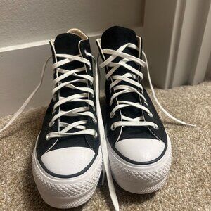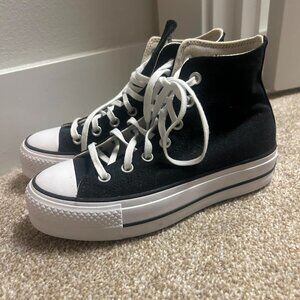 Only worn once, in great condition! Black hightop converse size 6 (run slightly big, I am normally a 6.5)