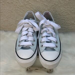 These classic Converse Sneakers come in a baby blue color! In great condition. My daughter only wore these once!