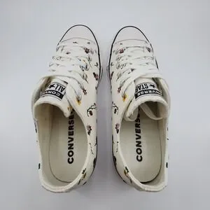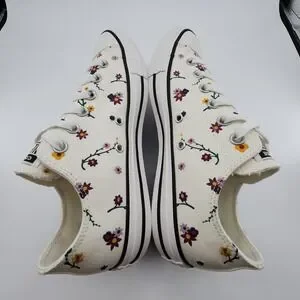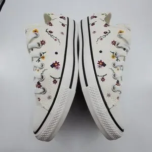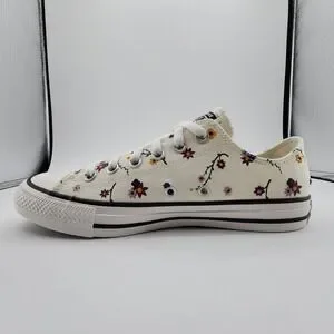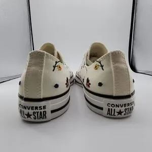 Converse Chuck Taylor All Star Low Shoes Womens 9 Cream Embroidered Floral NEW