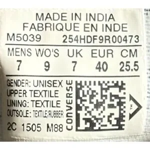 Converse Chuck Taylor All Star Low Top Black Monochrome Sneakers M5039 Men 7 W 9