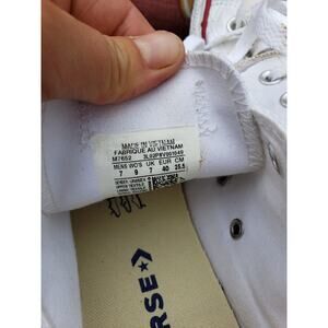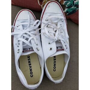 Converse Chuck Taylor All Star Low Top Unisex Women Size 9 Men’s size 7 White. Overall nice condition but there is some staining that will need cleaned. See photos for condition and visual description. Will come as is as shown. If you have any questions please ask 😊