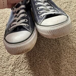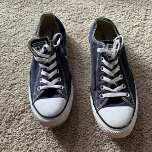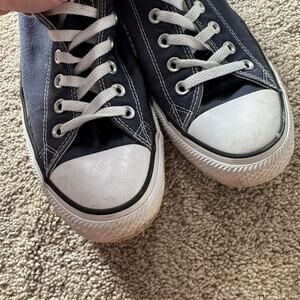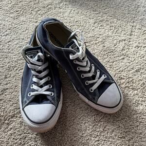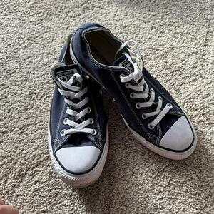 Converse Chuck Taylor All Star Lowtop Lace Up Sneakers Navy Blue in Women's Size 10 / Men's Size 8. Unisex adult. Shoes are in good used condition with some small signs of wear, including some fading or dirt staining on the white parts of the sole. Please see close-up pictures for condition details.