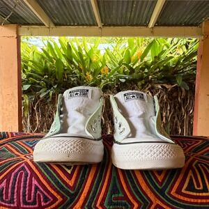 Converse Chuck Taylor All Star Madison Low in white canvas, Women's size 7. These show green dye transfer on the sides from contact with another pair of shoes (see photos). No holes, no tears, and fully wearable as-is. Model 557971F