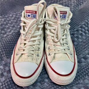 Classic Converse look with plenty of life left. Great for casual wear, cleaning projects, or customizing. See photos for exact condition.