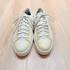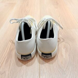 Converse white and buff sneakers with lace-up design. Perfect for casual wear.