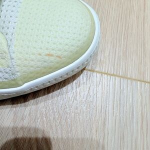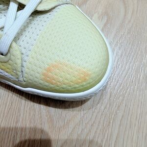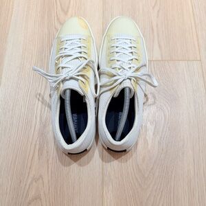 Preowned and in good condition small oxidized spot on toe of left sneakers shown in photo