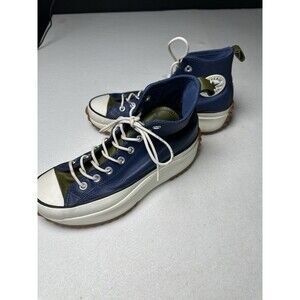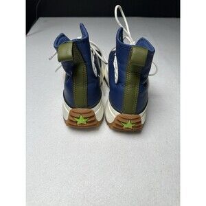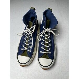 The Converse Chuck Taylor All Star Move Platform Women's Size 10.5 navy / army green sneakers boot are a stylish and comfortable option for casual wear. These over ankle hi top style sneaker feature a colorblock pattern with lace-up closure and a platform heel style, providing both support and cushioning. Made with leather upper material and rubber outsole, these limited edition sneakers are perfect for the winter, fall, and spring seasons. The Converse brand and iconic logo accents add a touch of retro flair to these versatile shoes, making them a must-have for any woman's wardrobe.