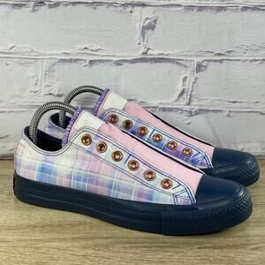Converse Chuck Taylor All Star Plaid Pink Blue Sip On Sneakers Women's 8 Shoes