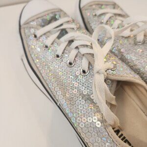 Converse Chuck Taylor All Star Silver Sequin Sneakers Women 9 Men 7