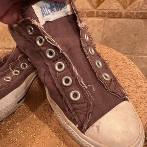 Vintage low-top slip-on style with no laces. Pre-owned with wear consistent with intentional distressing.